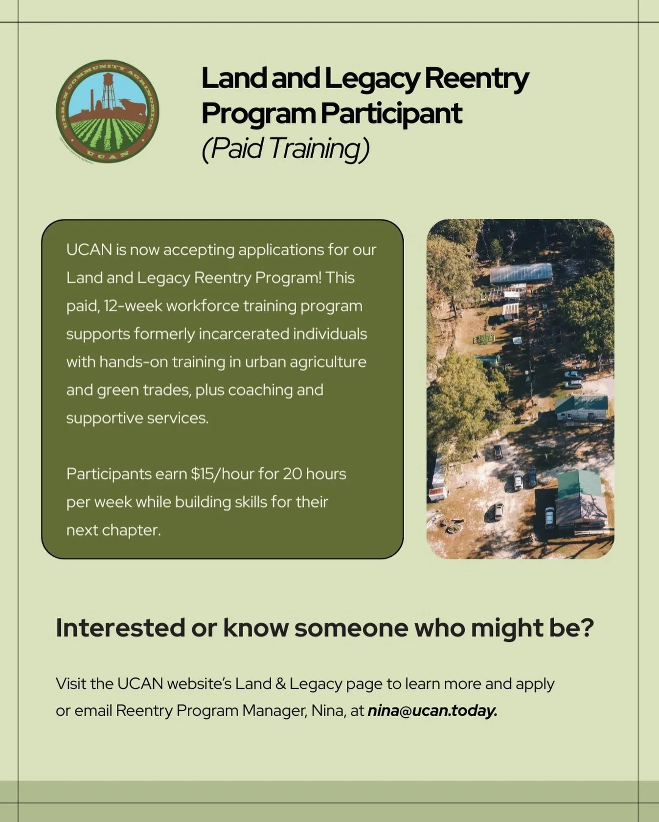 Urban Community AgriNomics (UCAN) has a great lineup of events and programs! From educational workshops to community outreach initiatives, there are plenty of opportunities for you to join us in making a positive impact. Explore our calendar to find out more about upcoming events and learn how you can get involved in supporting our mission of promoting sustainable agriculture and fostering community resilience.