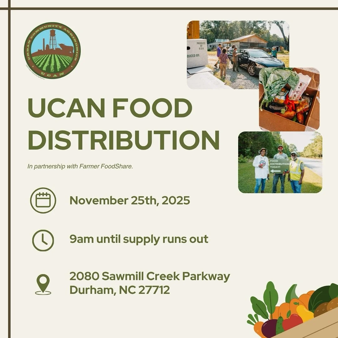 Urban Community AgriNomics (UCAN) is a 501(c)3 nonprofit founded April 29th, 2016 by sisters, Delphine Godley Sellars and Lucille Godley Patterson. This organization reflects their desire to engage the community of Northern Durham with skills based in agriculture and providing a place for those within the community to have access to fresh fruits and vegetables. UCAN has donated over 100,000lbs of fresh vegetables and fruits, through local harvesting and gleaning events sponsored by the Society of St. Andrews. UCAN provides opportunities for a diverse group of board members and volunteers.